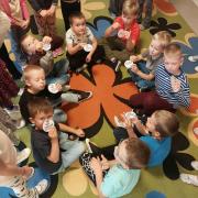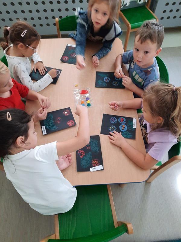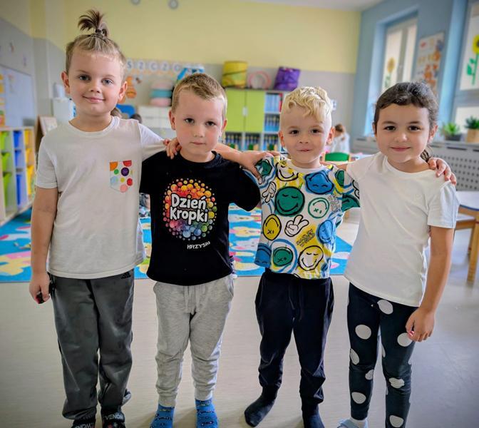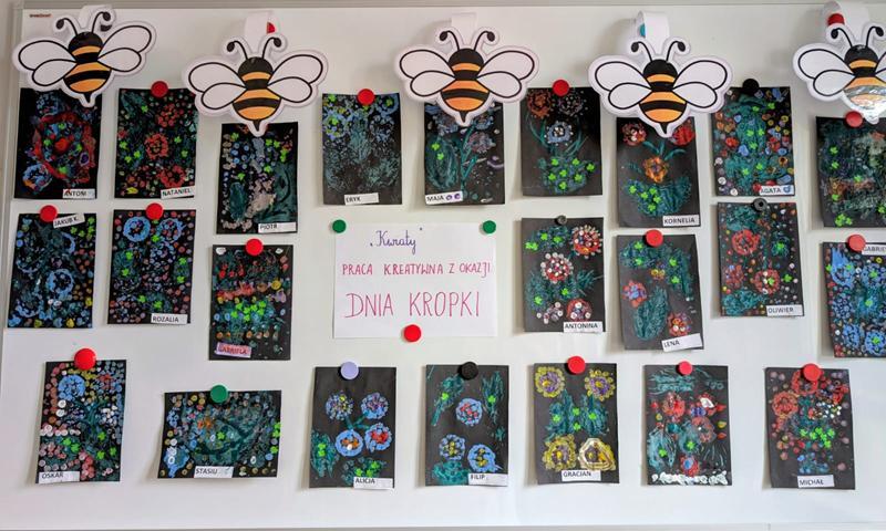 Dnia 16 września braliśmy udział w Międzynarodowym Dniu Kropki. Dlaczego bierzemy w nim udział? Bo małe kropki mają wielką moc! Jest to święto kreatywności i twórczości dzieci. Dzięki kropkom rozwijamy w dzieciach poczucie sprawczości i odwagi, a przy tym mają sporą dawkę zabawy i radości. Święto kropki obchodzone jest od 2008 w 196 krajach na całym świecie. Nasze przedszkolaki tego dnia brały udział w wielu inspirujących działaniach, w których zawsze była obecna kropka. Każda z grup zrealizowała działania plastyczne, sportowe, matematyczne, interaktywne przy użyciu tablicy multimedialnej, a wszystko to oparte na twórczości i kreatywności dzieci.