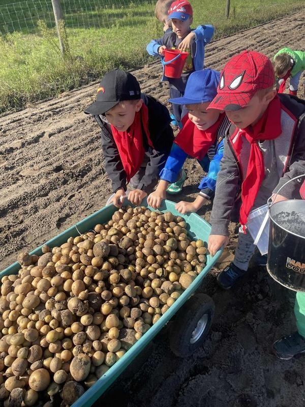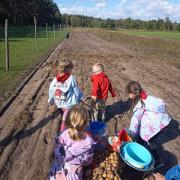We wtorkowe przedpołudnie przedszkolaki po raz kolejny odwiedziły Zagrodę Edukacyjną Białego Króliczka. Tym razem hasłem przewodnim były wykopki. Prace polowe na świeżym powietrzu oraz rekreacja na ekologicznym placu zabaw w towarzystwie zwierząt hodowlanych dostarczyła dzieciom wielu niezapomnianych wrażeń.