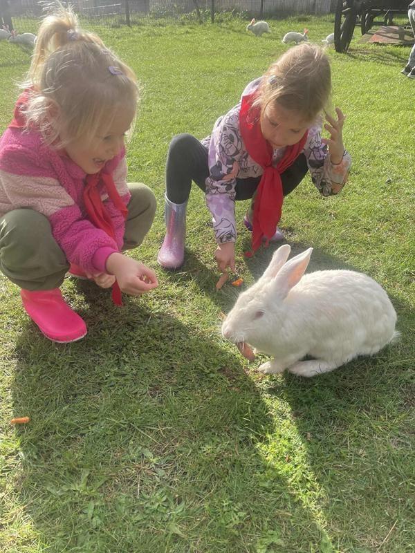 W minionym tygodniu dzieci z grupy Biedronek i Pszczółek wzięły udział w wyjeździe edukacyjnym do Zagrody Ekologicznej Białego Królika w Kęszycach. To zjawiskowe gospodarstwo położone jest w pięknej okolicy, z dala od innych gospodarstw, dosłownie w środku lasu na leśnej polanie. Siedlisko bezpośrednio otacza łąka, pola uprawne gospodarstwa i przede wszystkim lasy. Celem wyjazdu było ukazanie dzieciom piękna polskiej wsi oraz korzyści, jakie płyną z uprawiania ziemi i hodowli zwierząt, a także kształtowanie u dzieci poczucia więzi z najbliższym środowiskiem i regionem.