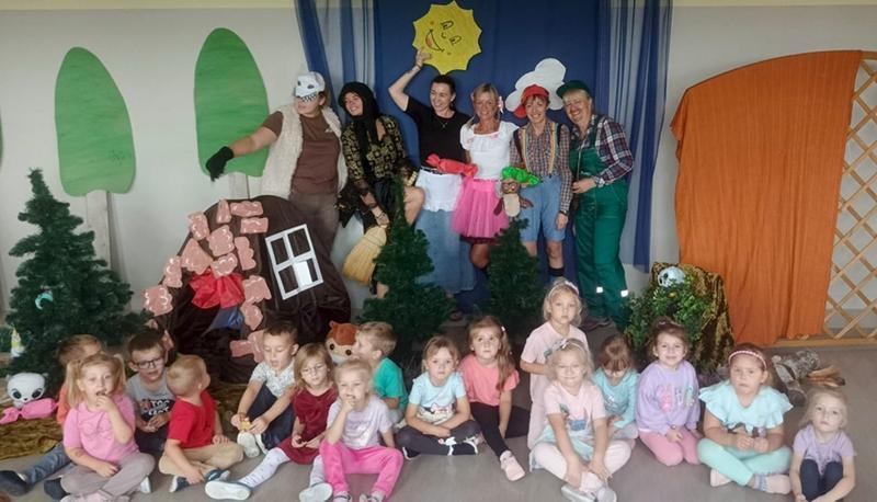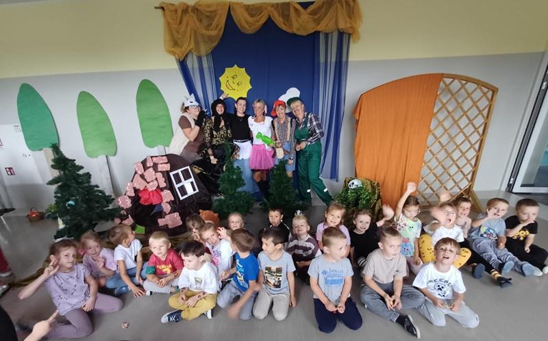 Nauczyciele i pracownicy przedszkola przygotowali dla dzieci adaptację wiersza „Rzepka” Juliana Tuwima. Przedstawienie odbyło się 24 października, a na widowni zasiadły przedszkolaki ze wszystkich grup – od maluchów po starszaki. Podczas wystąpienia każdy bohater wiersza wychodził do tematycznej piosenki. Zapraszamy do fotorelacji z tego wydarzenia.