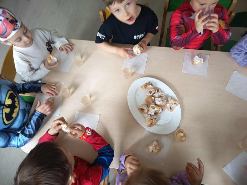 18 grudnia w przedszkolu odbył się wyjątkowy obiad wigilijny, który wprowadził dzieci w magiczną atmosferę Świąt Bożego Narodzenia. Na stole pojawiły się tradycyjne potrawy wigilijne, przygotowane z myślą o najmłodszych –m.in. barszcz, ryba, kapusta. Dzieci z entuzjazmem podchodziły do stołu, zachwycone pięknie udekorowaną salą i zapachem wigilijnych potraw.W trakcie obiadu panowała miła, świąteczna atmosfera – dzieci rozmawiały, dzieliły się wrażeniami, a wychowawcy zadbali o to, by każdy czuł się wyjątkowo. Po obiedzie przedszkolaki brały udział w wspólnych zabawach oraz kolędowaniu.Obiad wigilijny w przedszkolu był nie tylko okazją do smakowania tradycyjnych potraw, ale przede wszystkim do wspólnego świętowania i budowania ciepłych wspomnień, które dzieci będą pamiętać przez długi czas.