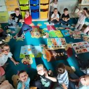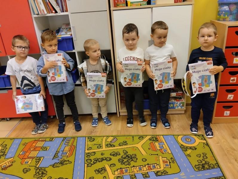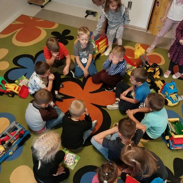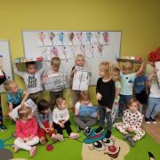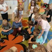Przedszkolaki z grup Zajączki i Sówki gościły w swojej sali panią Agnieszkę z biblioteki. Przeprowadziła ona z dziećmi literacką lekcję o emocjach. Bibliotekarka przeczytała przedszkolakom bajkę „Złość mówi dość” metodą kamishibai. Było to bardzo ciekawe doświadczenie dla naszych podopiecznych. Czuli się, jakby byli w teatrze, gdyż oglądali duże obrazki umieszczone w specjalnym otwieranym drewnianym pudełku. Następnie dzieci rysowały i opowiadały o swoich emocjach, a na koniec miały okazję pooglądać bajki o różnych emocjach i przeżyciach.