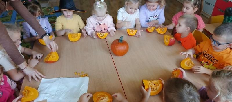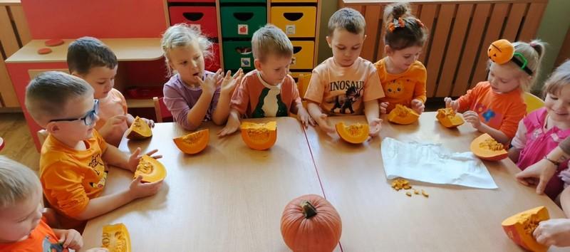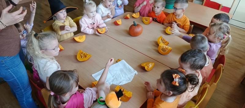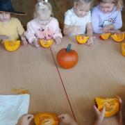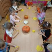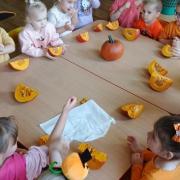 Dzisiaj nasze przedszkole nabrało pomarańczowego koloru, a to za sprawą obchodzonego przez wszystkie grupy Święta Dyni. W załączonych zdjęciach można zobaczyć jak dzieci celebrowały ten dzień.
