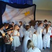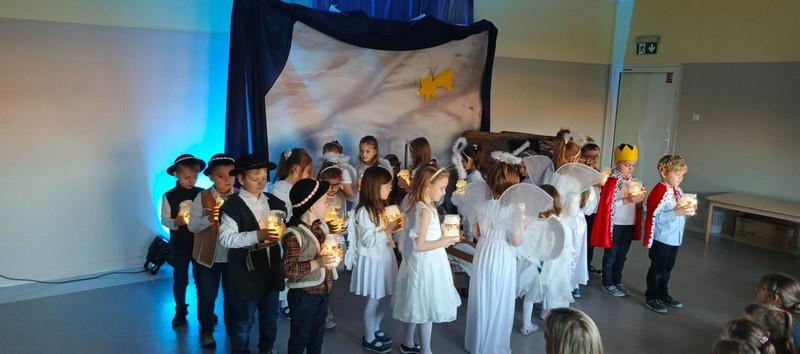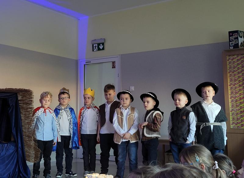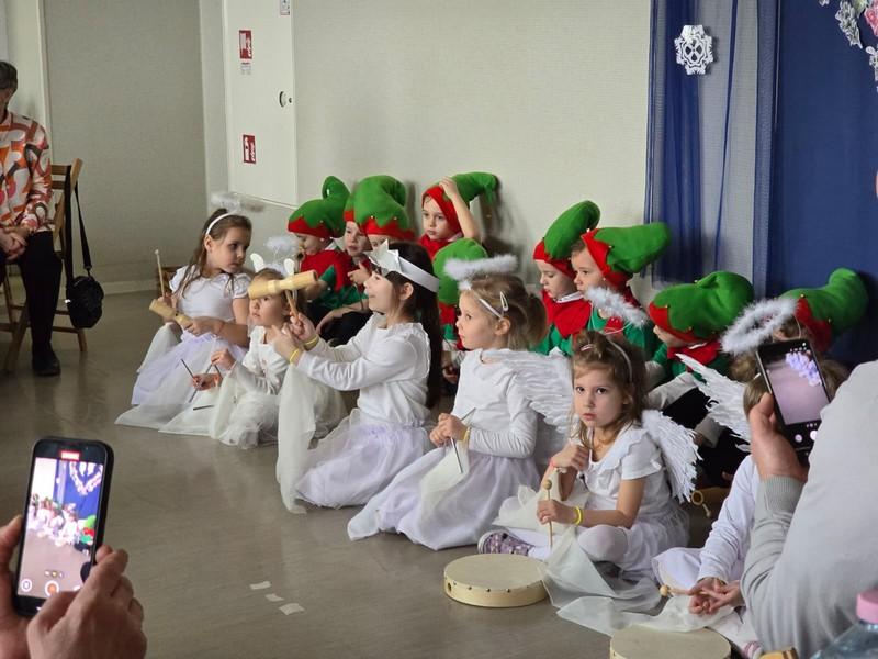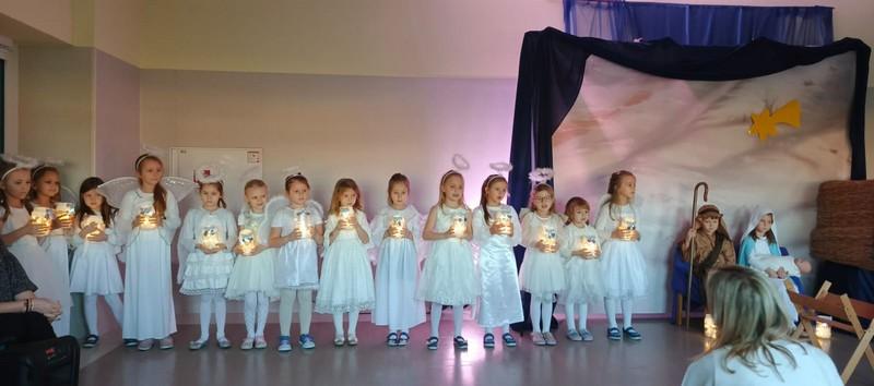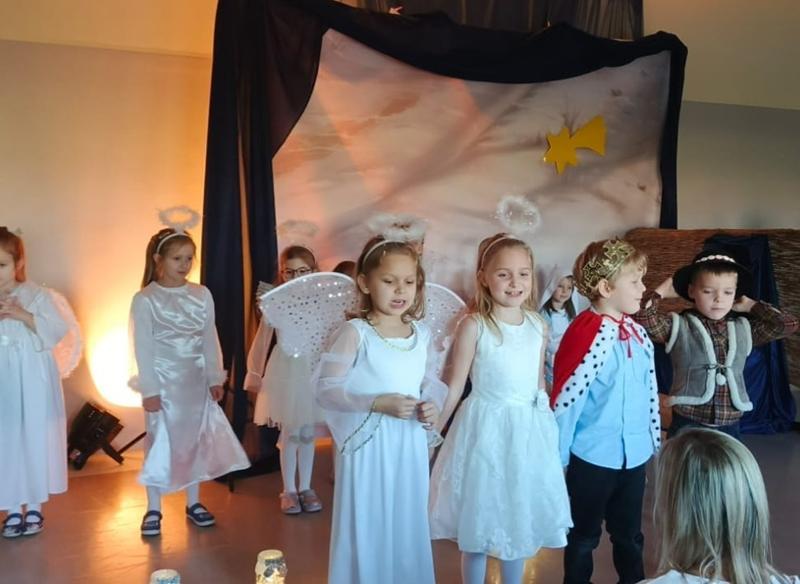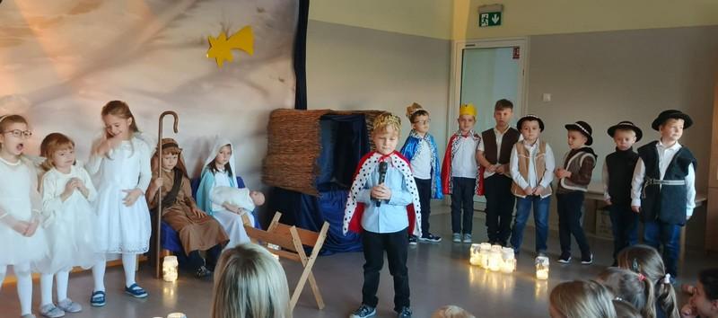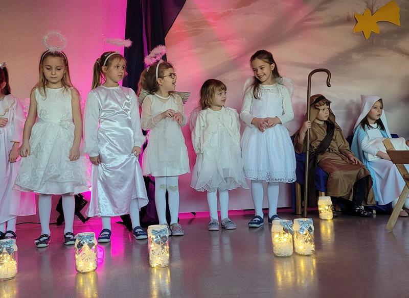 To, co najważniejsze i najpiękniejsze w Świętach Bożego Narodzenia to ich historia. Prześliczną wersję tej historii w postaci Jasełek przedstawiły najstarsze grupy z naszego przedszkola: Sówki i Żabki. Najważniejsze wydarzenia, takie jak zwiastowanie, narodzenie Jezusa, wiadomość Aniołów, wizyta pasterzy i trzech króli przeplatane były nastrojowymi piosenkami, kolędami oraz „białym” tańcem aniołków. Było to piękne spotkanie dyrekcji, dzieci i pracowników przedszkola wprowadzające w nastrój Świat Bożego Narodzenia.