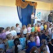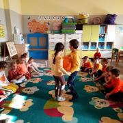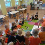 Przedszkolaki z grup Zajączki i Sówki gościły w swojej sali panią Agnieszkę z biblioteki. Przeprowadziła ona z dziećmi literacką lekcję o emocjach. Bibliotekarka przeczytała przedszkolakom bajkę „Złość mówi dość” metodą kamishibai. Było to bardzo ciekawe doświadczenie dla naszych podopiecznych. Czuli się, jakby byli w teatrze, gdyż oglądali duże obrazki umieszczone w specjalnym otwieranym drewnianym pudełku. Następnie dzieci rysowały i opowiadały o swoich emocjach, a na koniec miały okazję pooglądać bajki o różnych emocjach i przeżyciach.