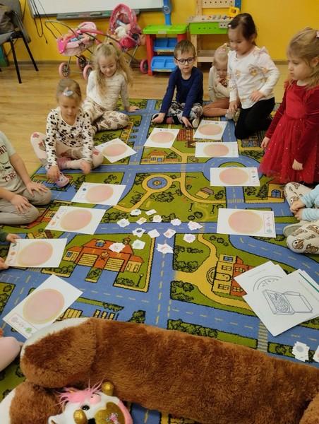Przedszkolaki z grup Zajączki i Sówki gościły w swojej sali panią Agnieszkę z biblioteki. Przeprowadziła ona z dziećmi literacką lekcję o emocjach. Bibliotekarka przeczytała przedszkolakom bajkę „Złość mówi dość” metodą kamishibai. Było to bardzo ciekawe doświadczenie dla naszych podopiecznych. Czuli się, jakby byli w teatrze, gdyż oglądali duże obrazki umieszczone w specjalnym otwieranym drewnianym pudełku. Następnie dzieci rysowały i opowiadały o swoich emocjach, a na koniec miały okazję pooglądać bajki o różnych emocjach i przeżyciach.